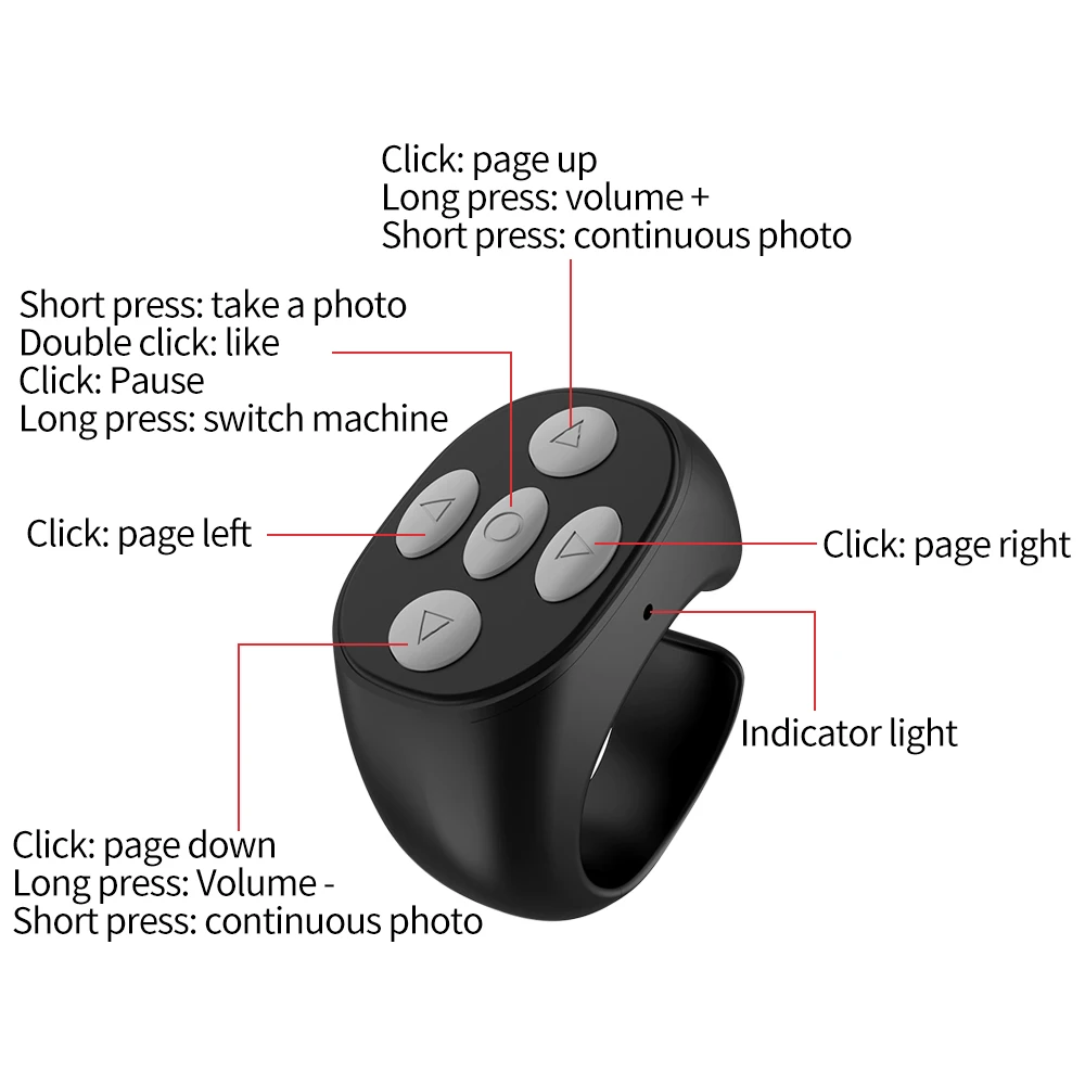 Function: selfie, like, page up, down, left and right, volume increase and decrease.