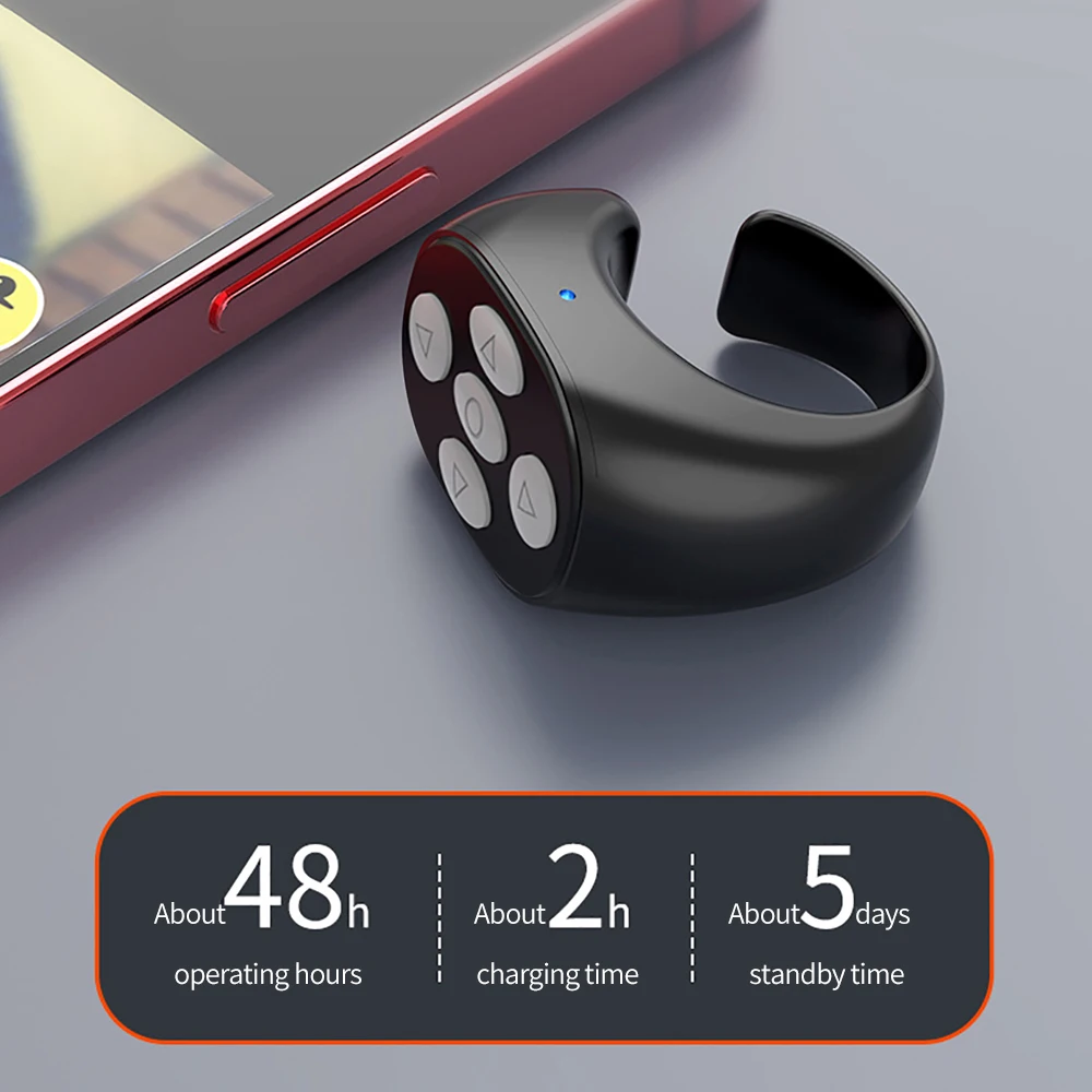 7.Bluetooth-compatible remote control: In the mobile phone photo or video mode, long press the up or down button on the ring within a distance of 10 meters.